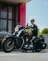 私は16歳で中免を取得後、仲間と峠を攻めた時からバイクライフをスタートし、その後18歳の時深夜の峠で目の前で親友が事故にあい、還らぬ人となりました。その様な事が今後減る様に日々SNSで啓発活動を行っております。友人の事故後、マスツーはおろかSSは乗れず、それでもバイクは諦めきれず、ヨンフォアを初めて購入し、アメリカンへ。